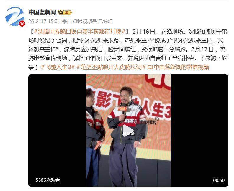 网友们显然不打算放过这个欢乐素材。有人翻出2014年《扶不扶》里他忘词后马丽救场的名场面,调侃“腾式失误才是真正的春晚保留节目”;还有人P出“沈腾掼蛋教学”表情包,配文“打错牌总比说错词强”。连央视新闻都来凑热闹,发了条“沈腾牌解压法:失误了?打掼蛋啊”的微博,收获十万点赞。这种全民玩梗的背后,藏着观众对真实的偏爱——比起完美无缺的表演,大家似乎更爱这个会紧张、会犯错,还会用打扑克解压的“普通人沈腾”。