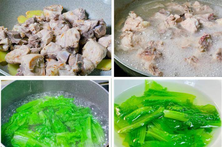【食材准备】:莴笋叶200克、猪大骨1斤、老姜、食盐、食用油适量。