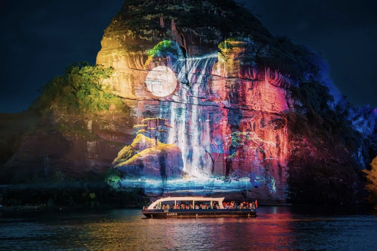 在9月份举行的2025广东文化和旅游产业招商暨投融资对接会上,祥源控股集团助理总裁兼祥源丹霞山旅游有限公司董事长刘樱蕾曾表示,“万古丹霞”大型山水实景夜游光影秀是延长游客停留时间、创造旅游消费的重要举措,这一夜游产品有效填充了丹霞山景区的全时段运营空白,实现“白+黑”多业态组合,并带动区域经济增长。“‘万古丹霞’将亿万年的地质奇观转化为可感知、可互动、可体验的沉浸式场景,开创了地质遗产和数字艺术的创新性消费的新场景。”