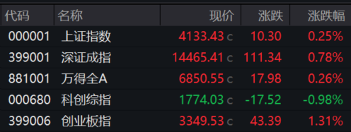 3月11日,A股三大指数集体收涨。沪指涨0.25%,深成指涨0.78%,创业板指涨1.31%。科创综指跌0.98%。