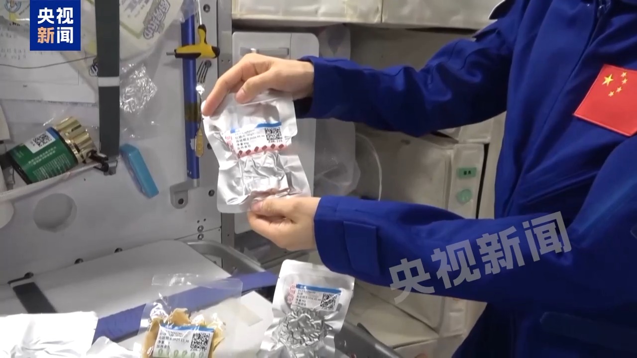 航天员 陈冬:中秋节我们也有丰盛的食物。今天属于加菜,比平时多几个菜。