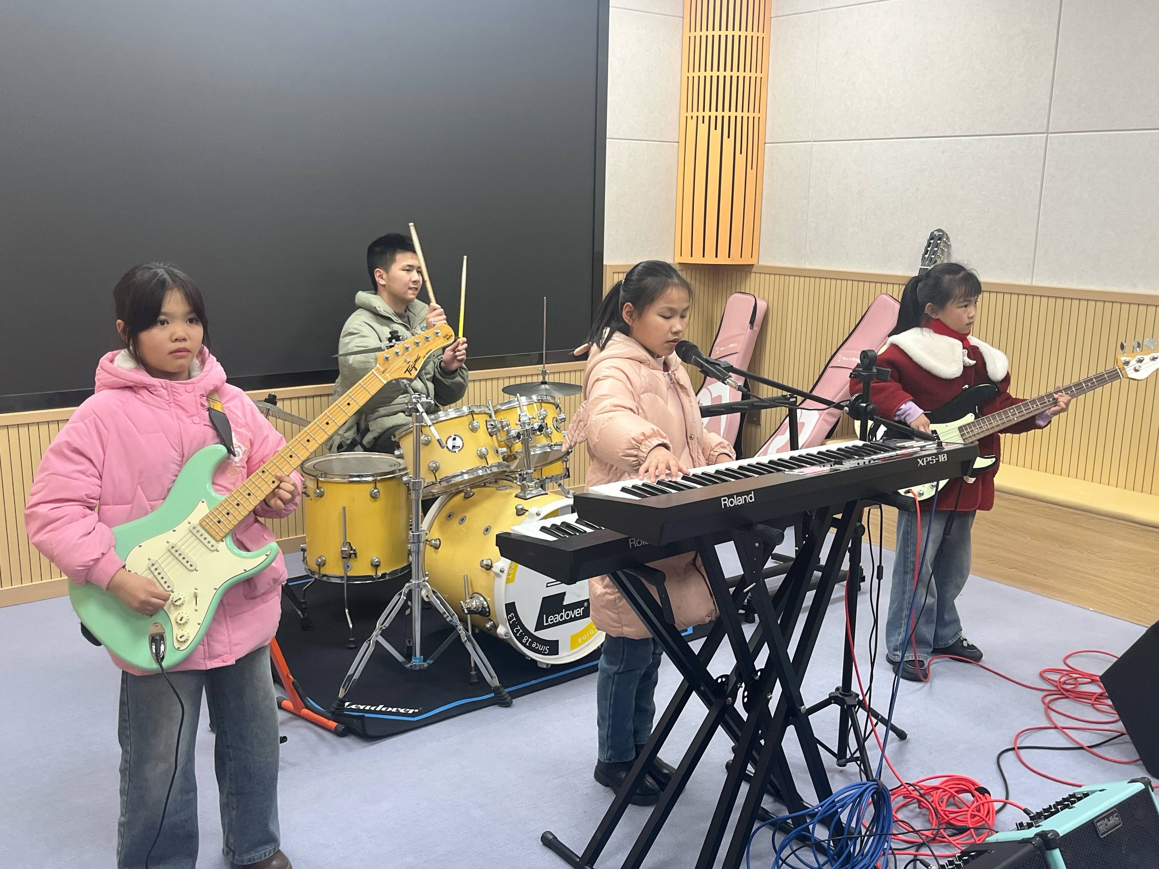 春节前夕,“萤河计划”乐队在学校音乐室内排练。新华社记者周思宇摄常常有人问,听障孩子连声音都听不清,音乐对他们来说有什么意义?
