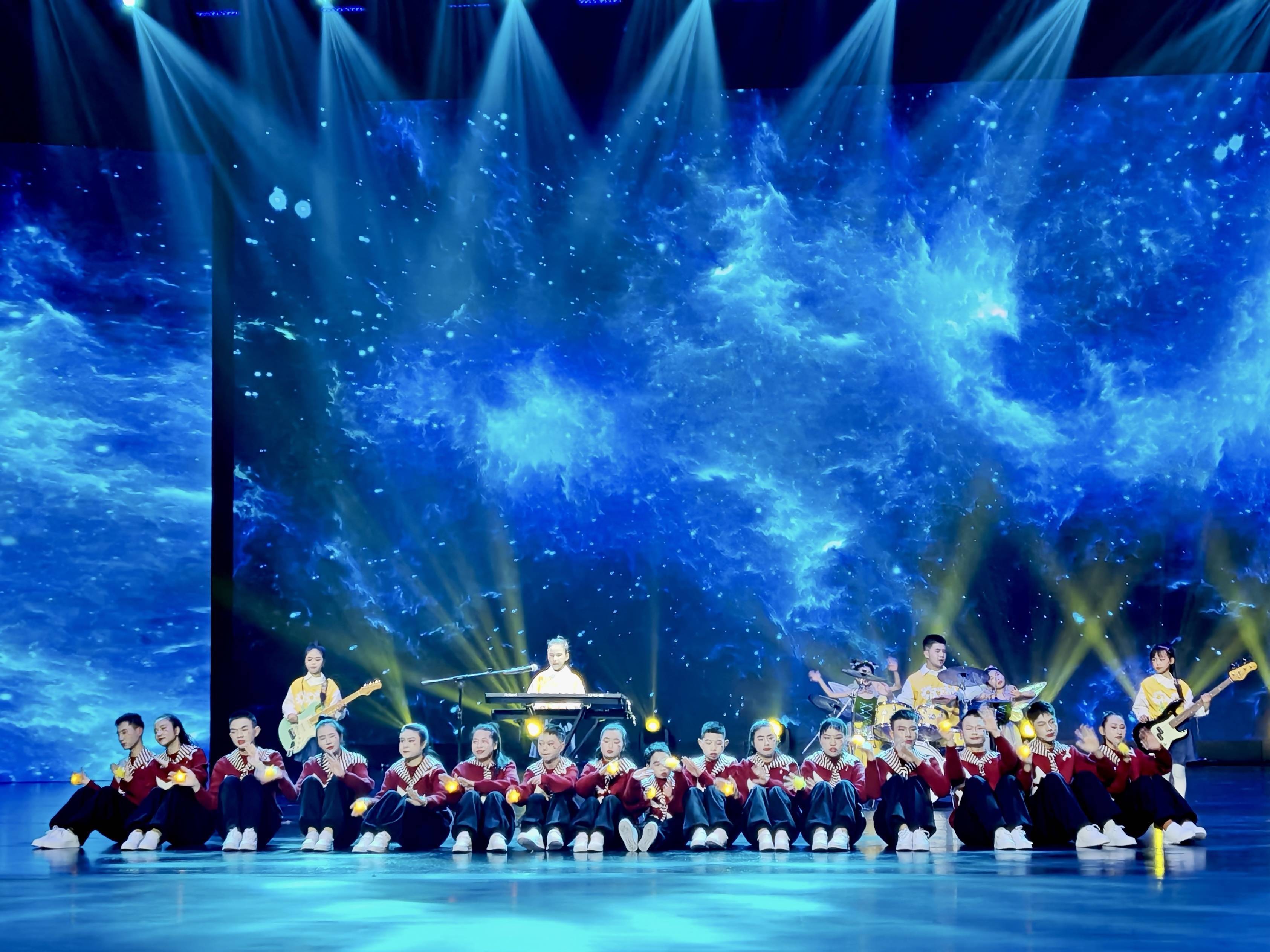这是一支特别的乐队,成员中有孤独症孩子、听障和视障孩子。当前奏响起,蓝色光束洒下,孩子们静静等待着,这一刻只属于他们的舞台。